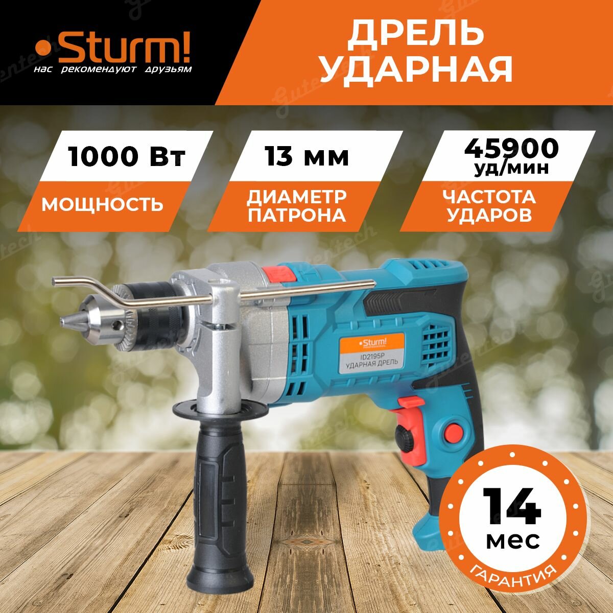 Дрель ударная Sturm! ID2195P профессиональная серия (1000Вт, ОЗП-13 мм, металлический редуктор, реверс)