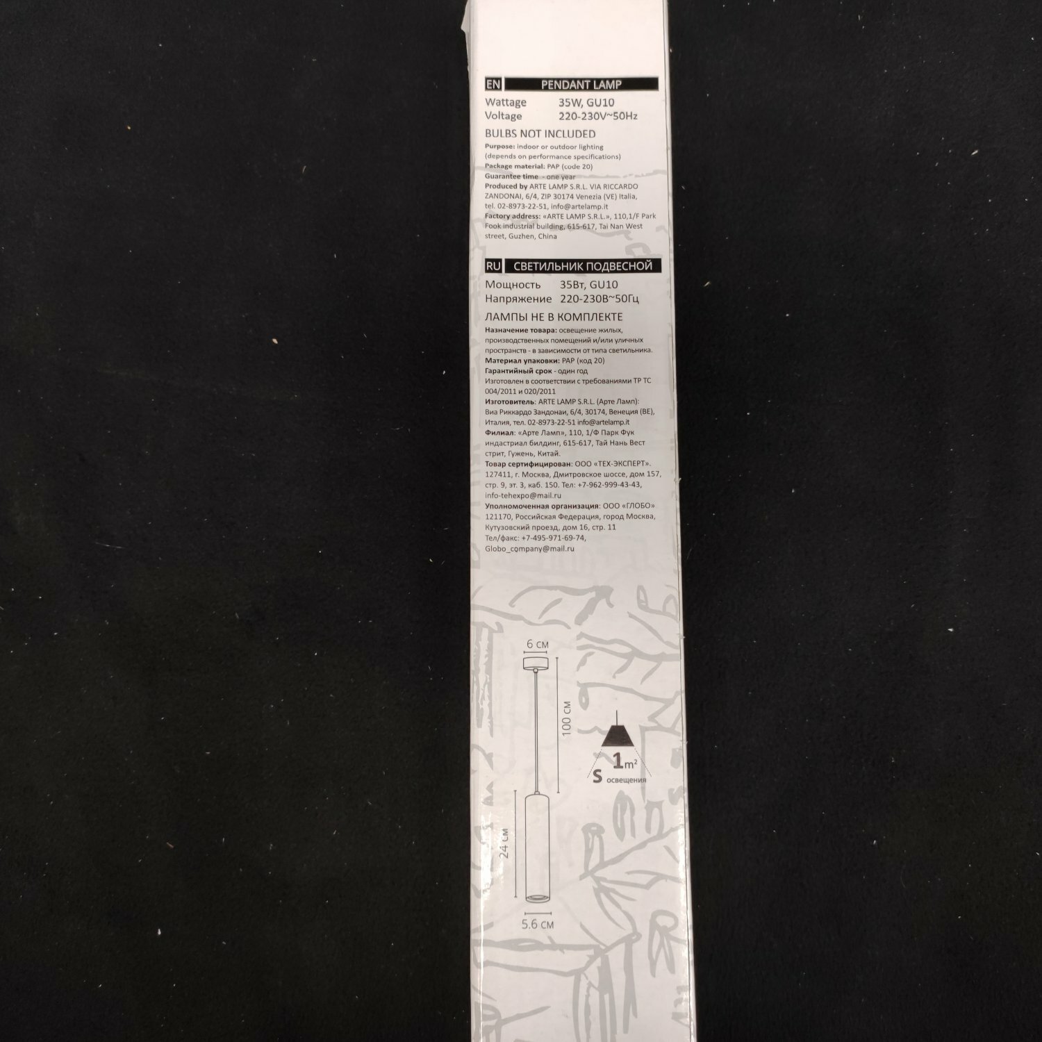 Светильник подвесной Arte Lamp Sirius A1524SP-1BK, GU10, кол-во ламп:1шт., Черный