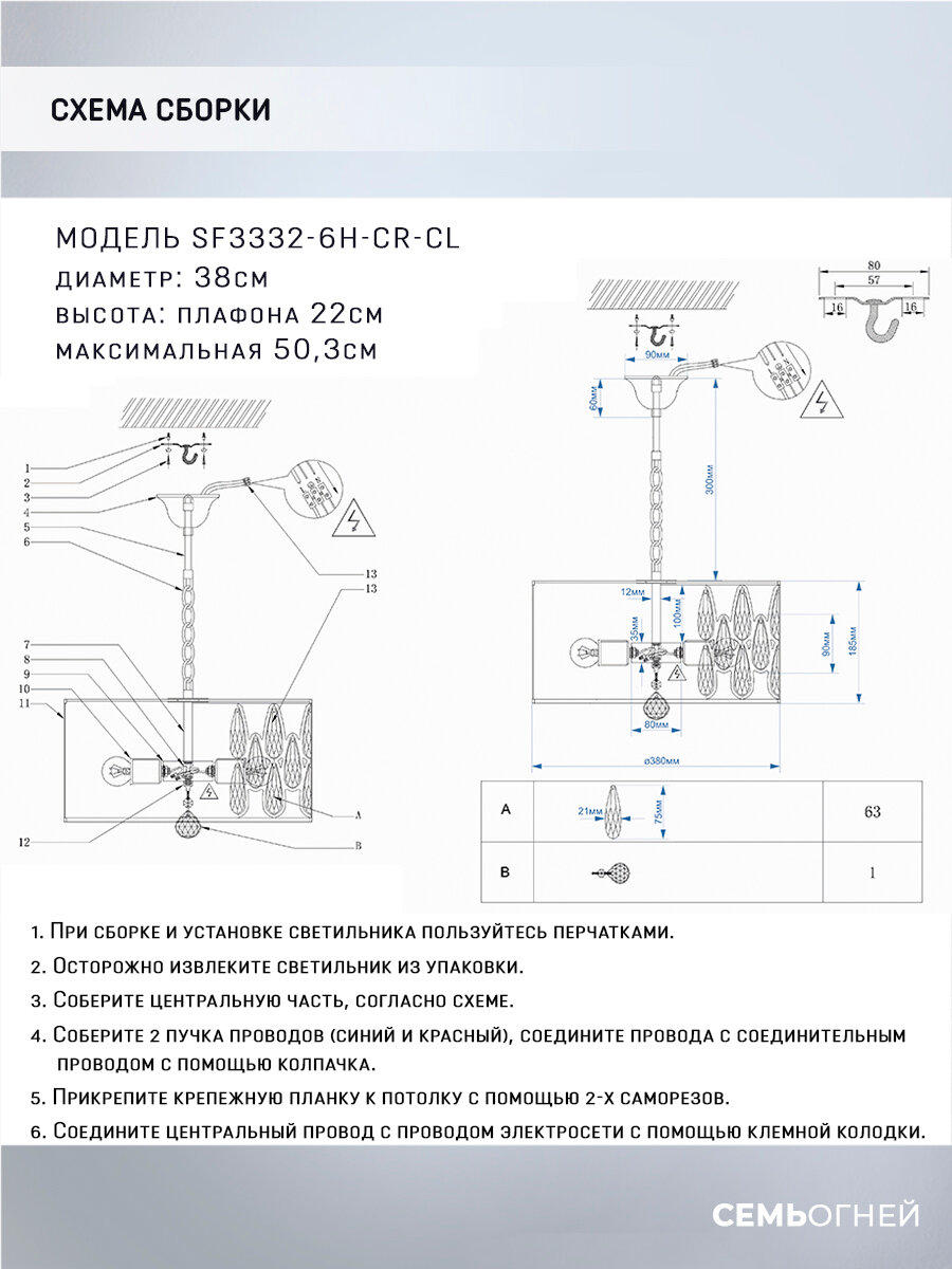 Люстра Семь огней 120110 sf3332/6h-cr-cl
