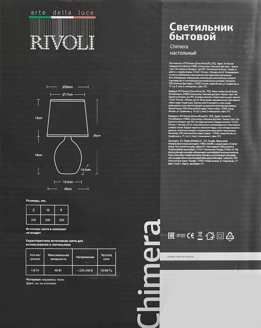 Настольная лампа Rivoli Chimera 7072-503 Б0057275 интересное: