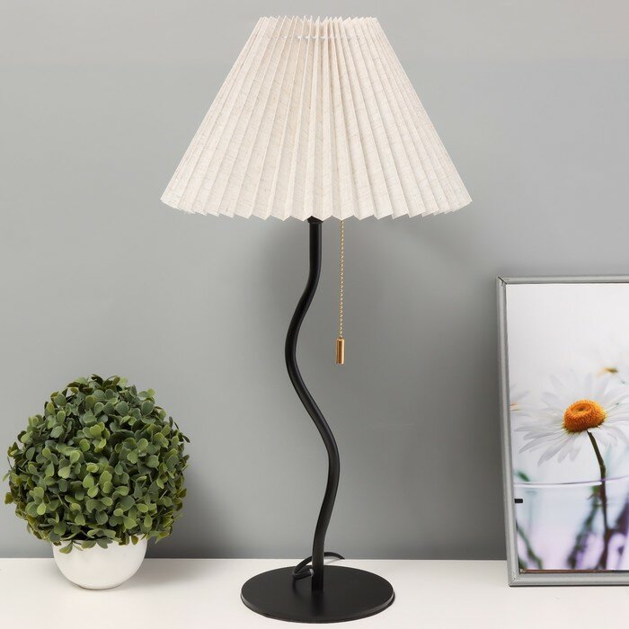 Купить Светильник настольный , торшер интерьерный, декоративный с абажуром, цвет Черный+Натурал, 220V 15W E27