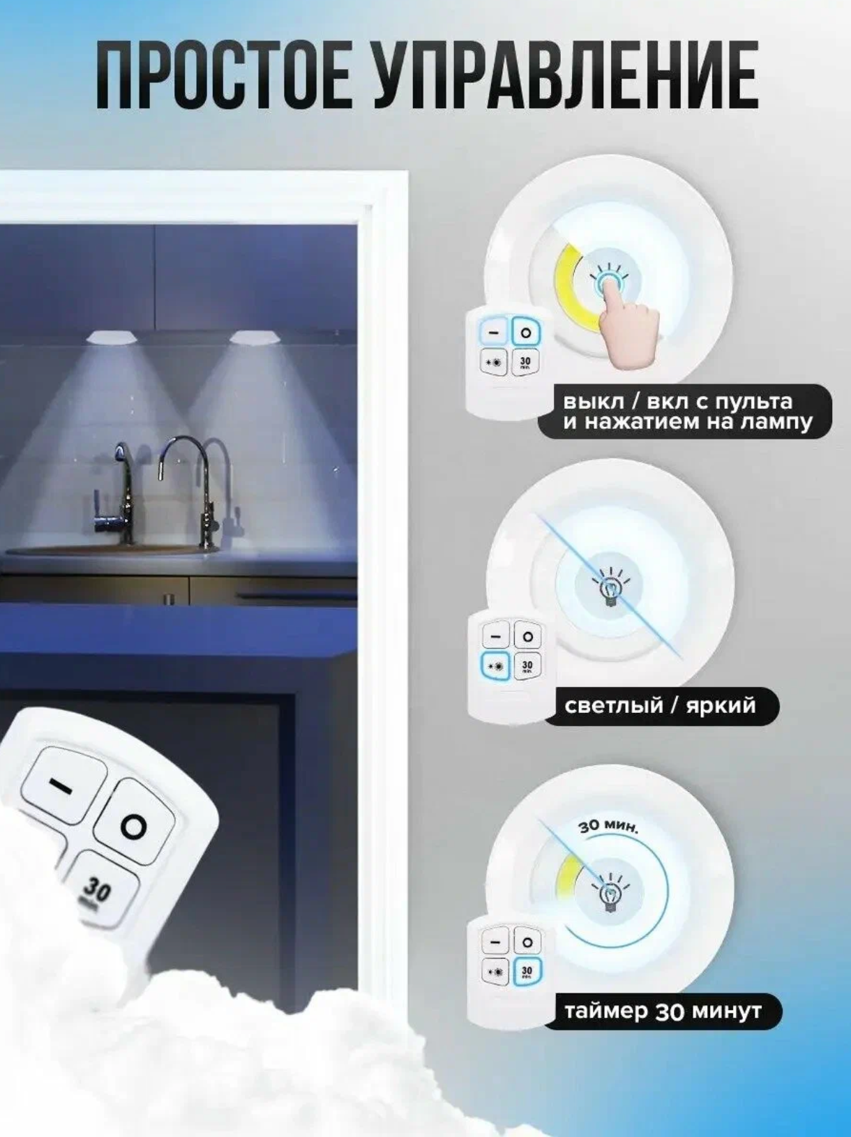 | Дополнительная информация | накладной светодиодный светильник; беспроводной светильник на липучке |