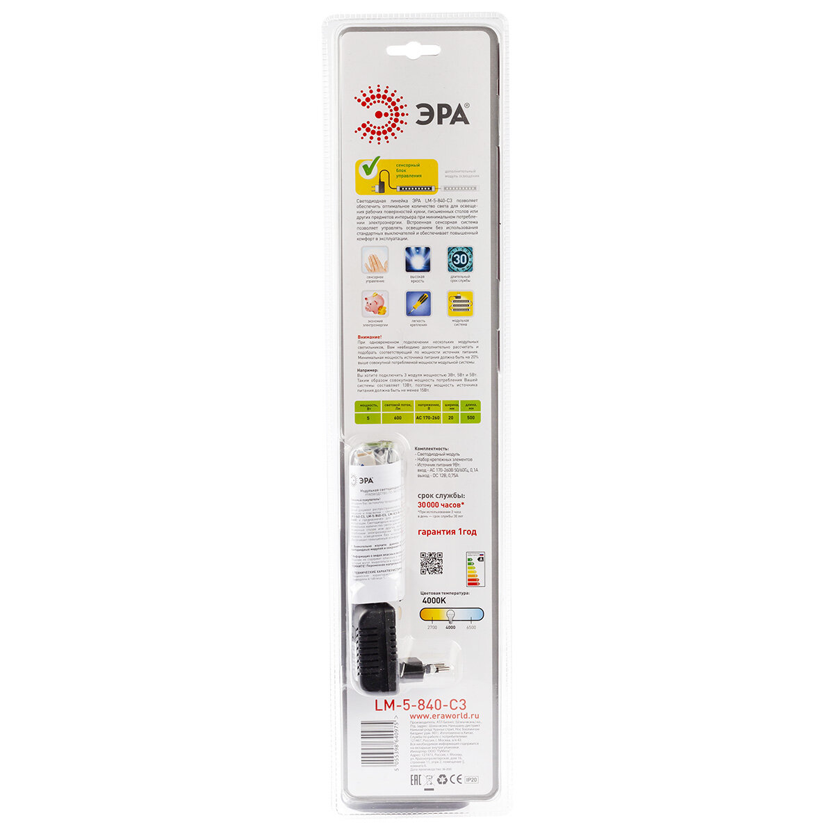 | Дополнительная информация | Светильник модульный светодиодный ЭРА LM-5-840-C3 |