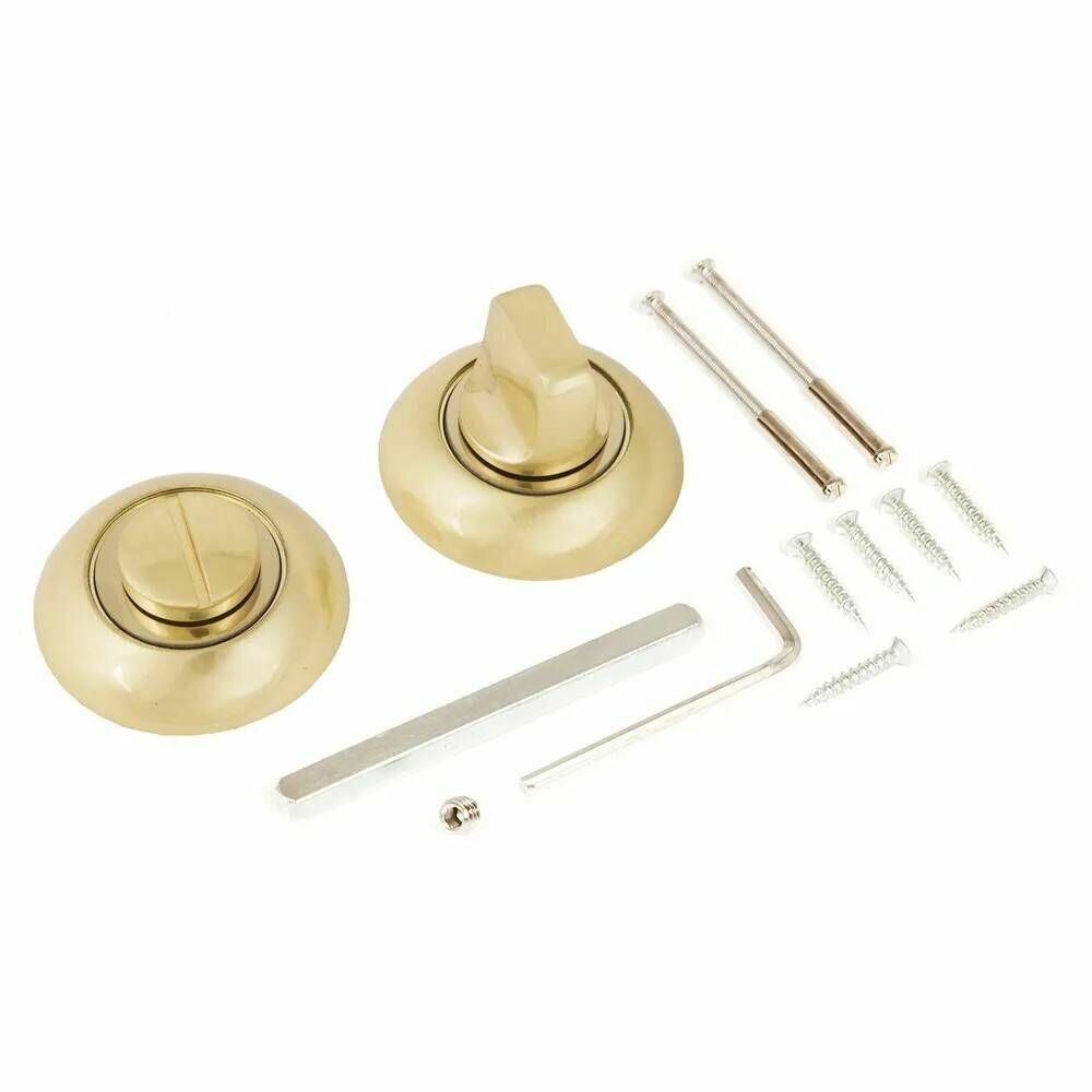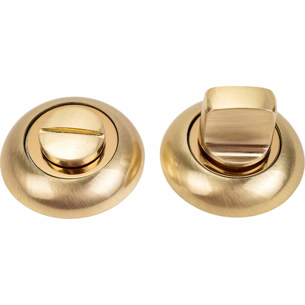 Купить Завертка дверная сантехническая для межкомнатных дверей на круглом основании Loid SG/GP Матовое золото/золото (фиксатор WC для врезных замков, задвижек)