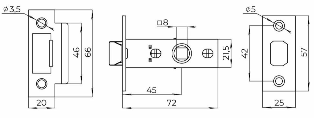 Замок для межкомнатных дверей / защелка врезная LP45-8 CP Хром