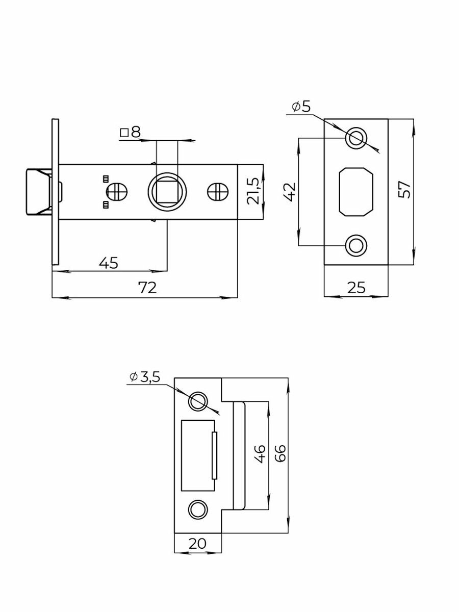 Замок для межкомнатных дверей / защелка врезная LP45-8 CP Хром