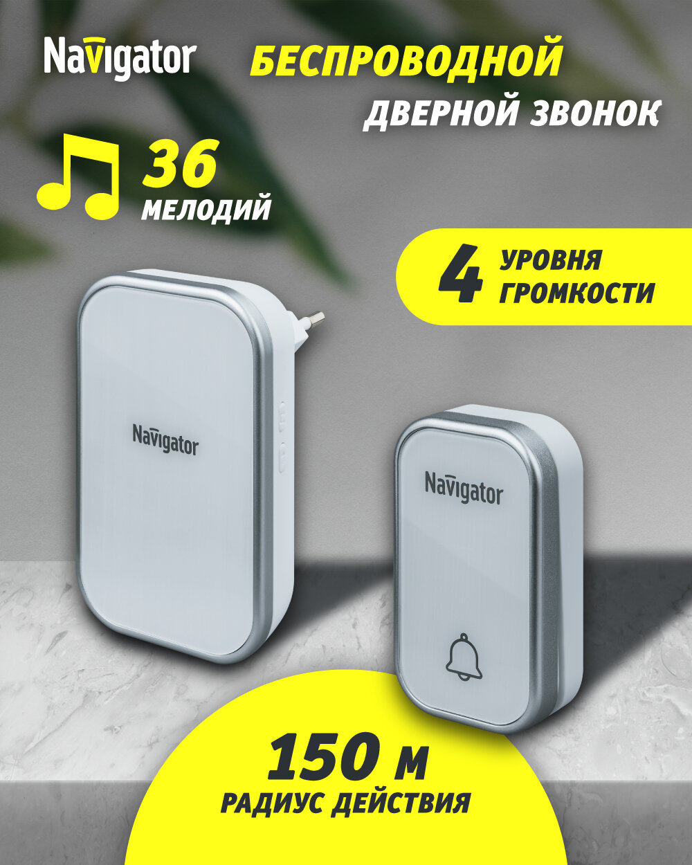 Звонок дверной беспроводной цифровой Navigator 80 506, 36 мелодий, белый