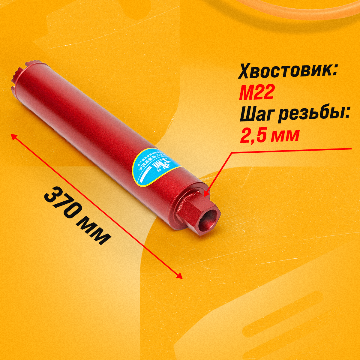 Коронка алмазная М22 18*370 мм мокрорез по бетону, кирпичу для сухого и мокрого бурения