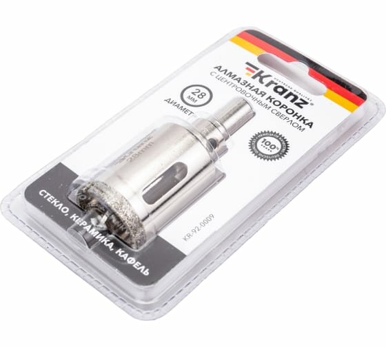 Купить Коронка KRANZ алмазная с повышенным ресурсом работы, 28 мм с центровочным сверлом для работ по керамограниту и стеклу