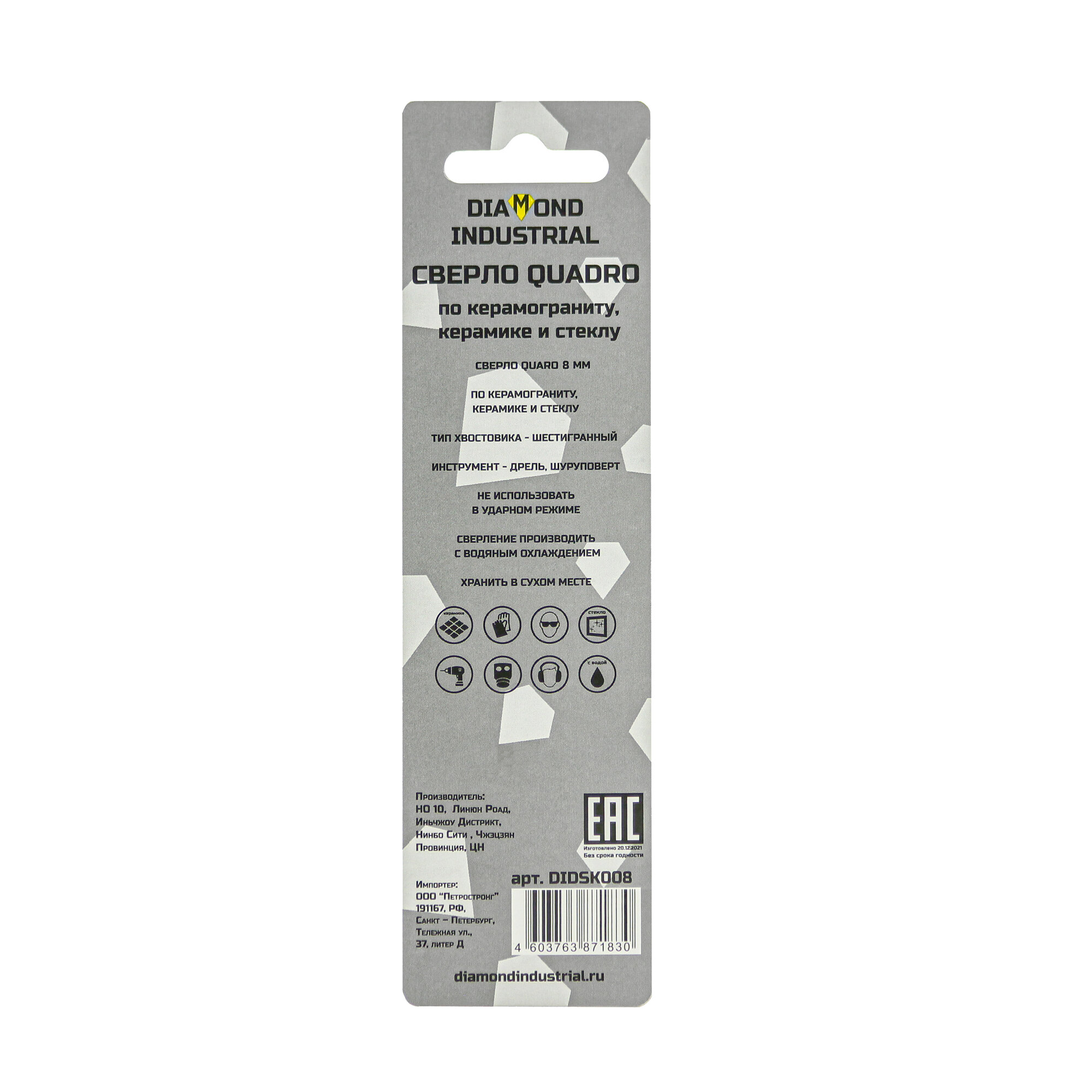 Купить Сверло по керамограниту, стеклу и керамике квадро 8 мм Diamond Industrial