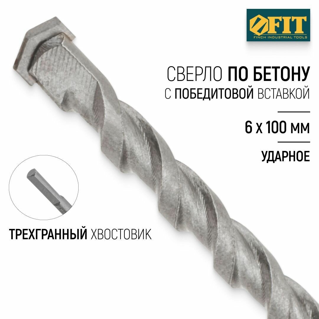 Сверло победитовое ударное, трехгранный хвостовик (для бетона, кирпича) 6х100 мм | код 34506 | FIT (1 шт.)