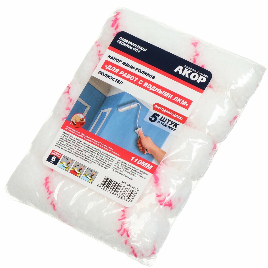 Набор мини-роликов для работ с водными ЛКМ, 5 шт, 110 мм, ворс 12 мм, 533 00 110 интересное: