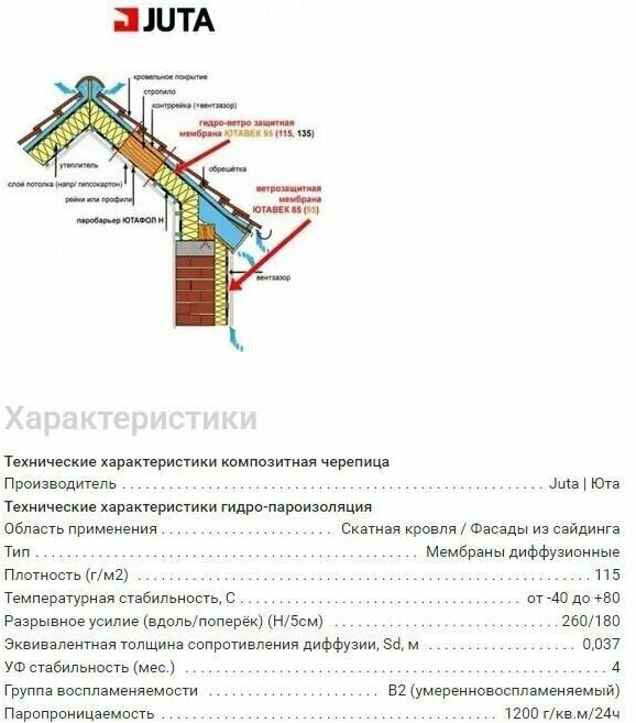 Подкровельная супердиффузионная мембрана Juta Ютавек 115 красный 1,5х50м, 75м2 интересное: