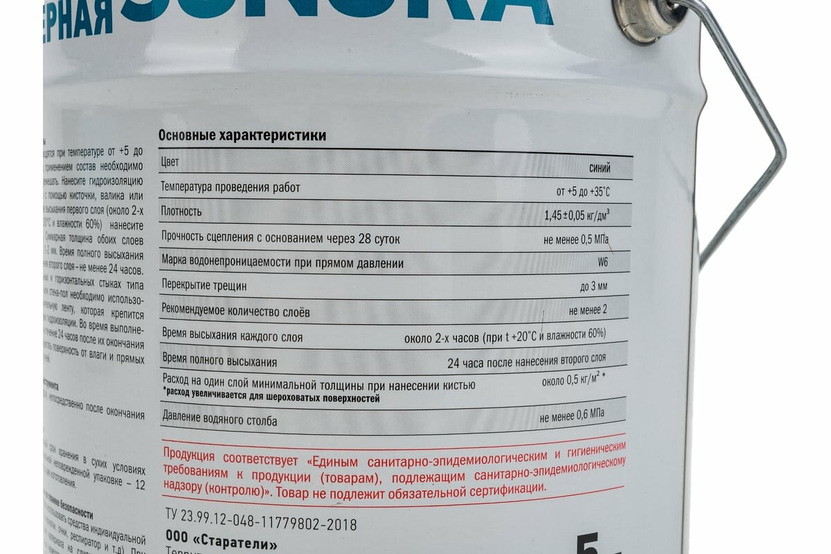 Гидроизоляция Старатели Sonora, полимерная, для ванных комнат, 5кг, синяя