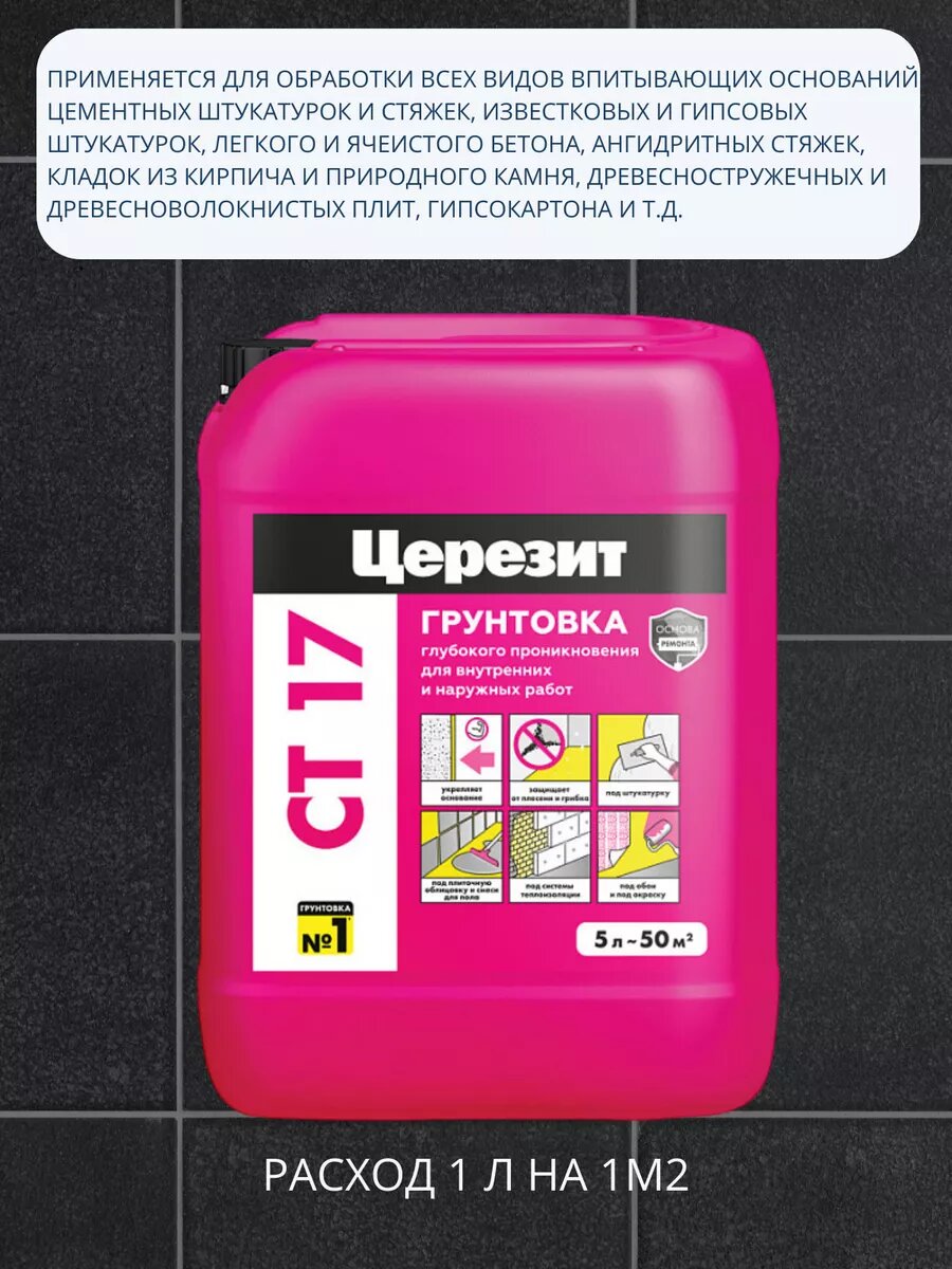 Грунтовка глубокого проникновения CT17 5 литр интересное: