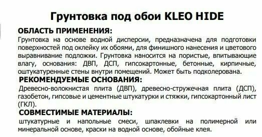 Kleo Hide грунтовка под обои укрывающая (30 м2, 4,5 кг)
