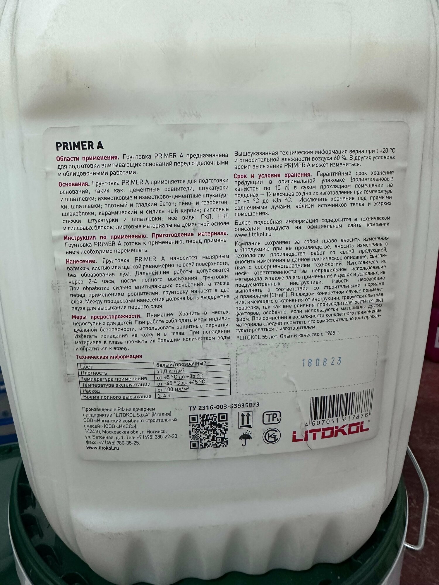 Универсальная грунтовка "Litokol Primer A" 10 литров интересное: