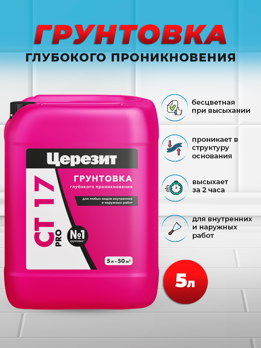 СохранитьГрунтовка CERESIT (5 л, СТ 17 PRO, (1130355)) интересное: