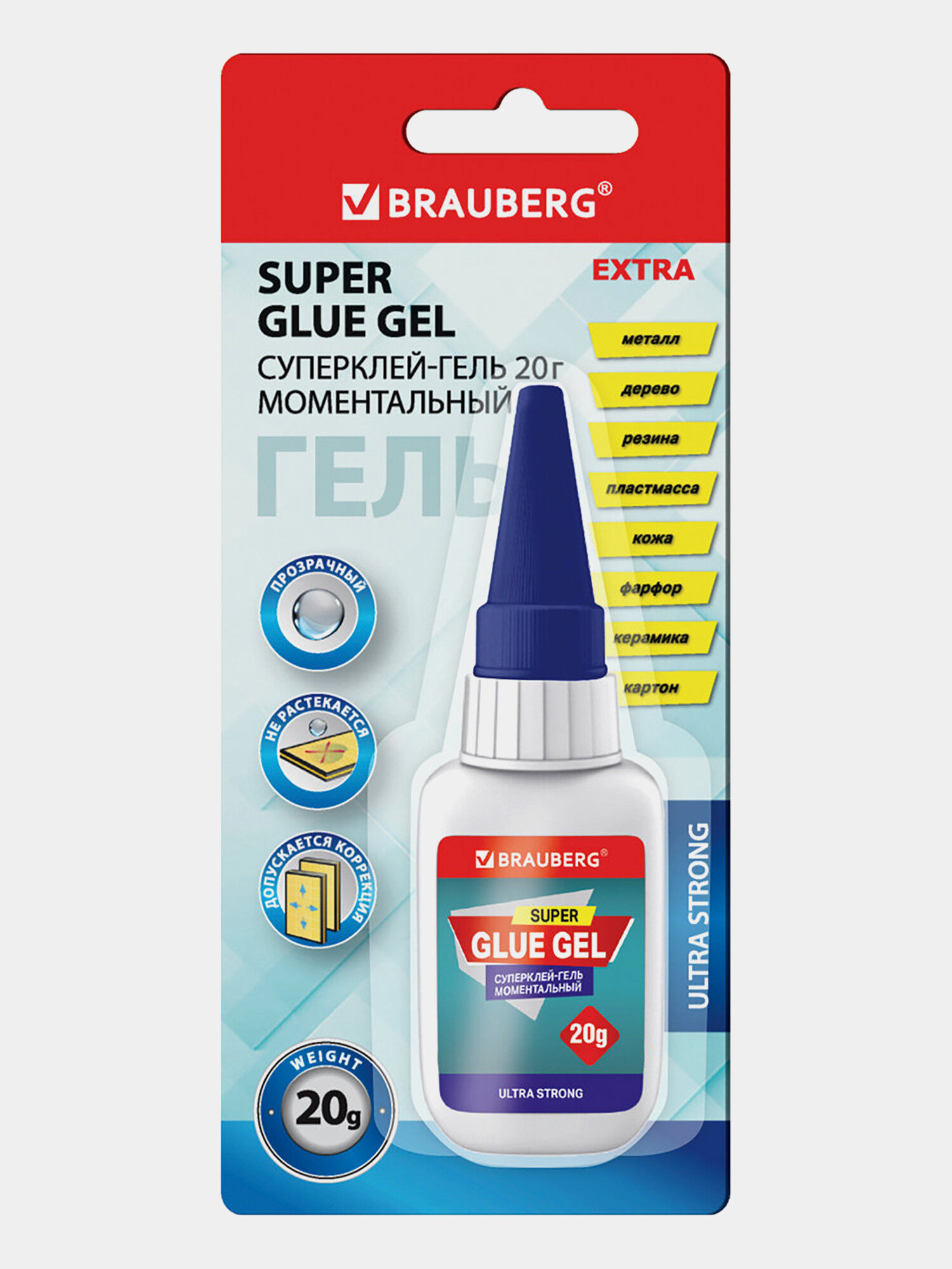 Клей-Гель моментальный ультрапрочный суперклей BRAUBERG EXTRA 20 грамм, максимальный объем, 608102