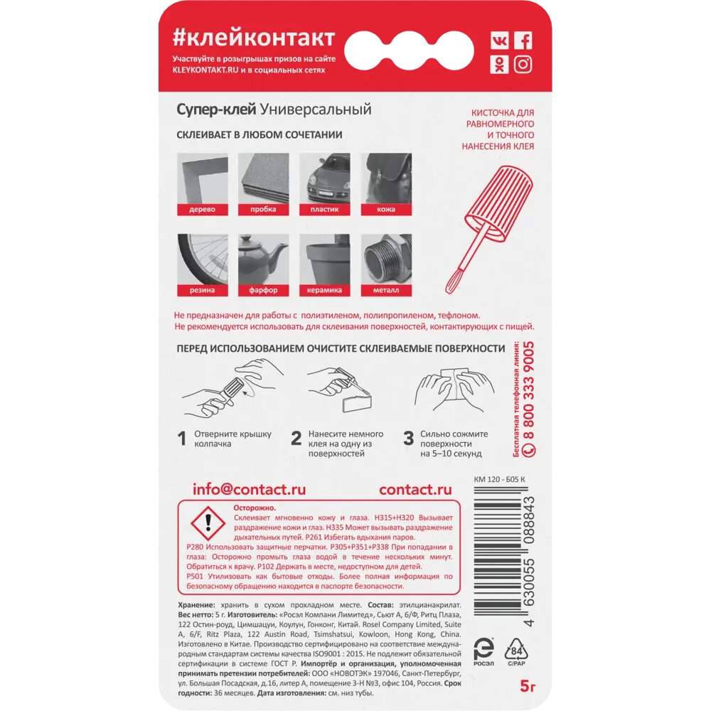Клей Контакт универсальный секундный с кисточкой, 5 г, КМ120-Б05К