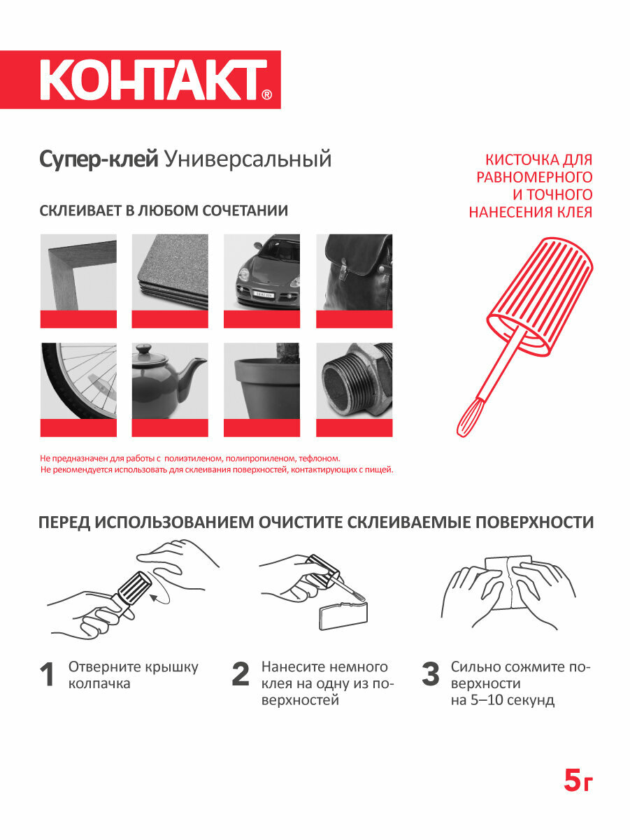 Ниже Вы можете прочитать отзывы на Супер клей контакт Универсальный с кисточкой, 5 г., ознакомится с подробными характеристиками, посмотреть интересные обзоры и фотографии на Супер клей контакт Универсальный с кисточкой, 5 г..