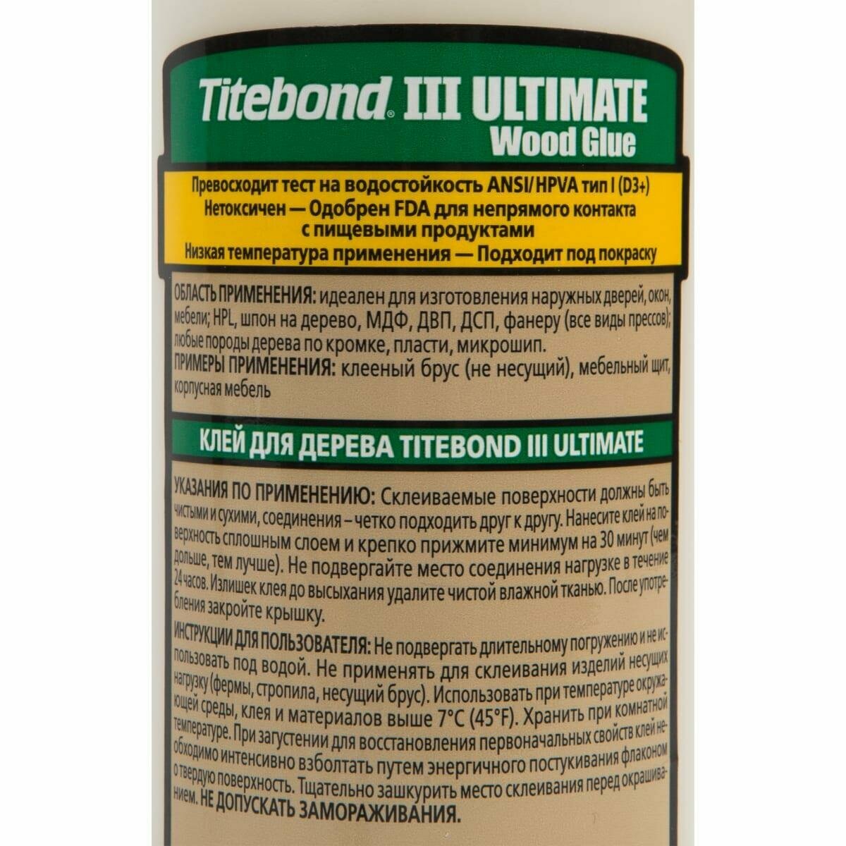 Столярный ПВА клей Titebond III Ultimate повышенной влагостойкости, 237 мл