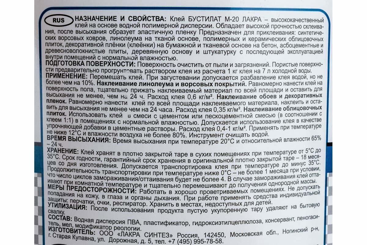 | Дополнительная информация | Клей ЛАКРА М-20 Бустилат 2,5кг, арт.М20-2,5 |