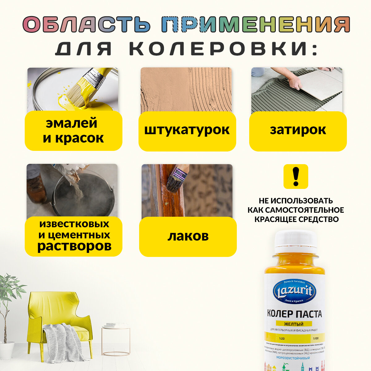 LAZURIT Колер-паста желтый 100 мл/1шт