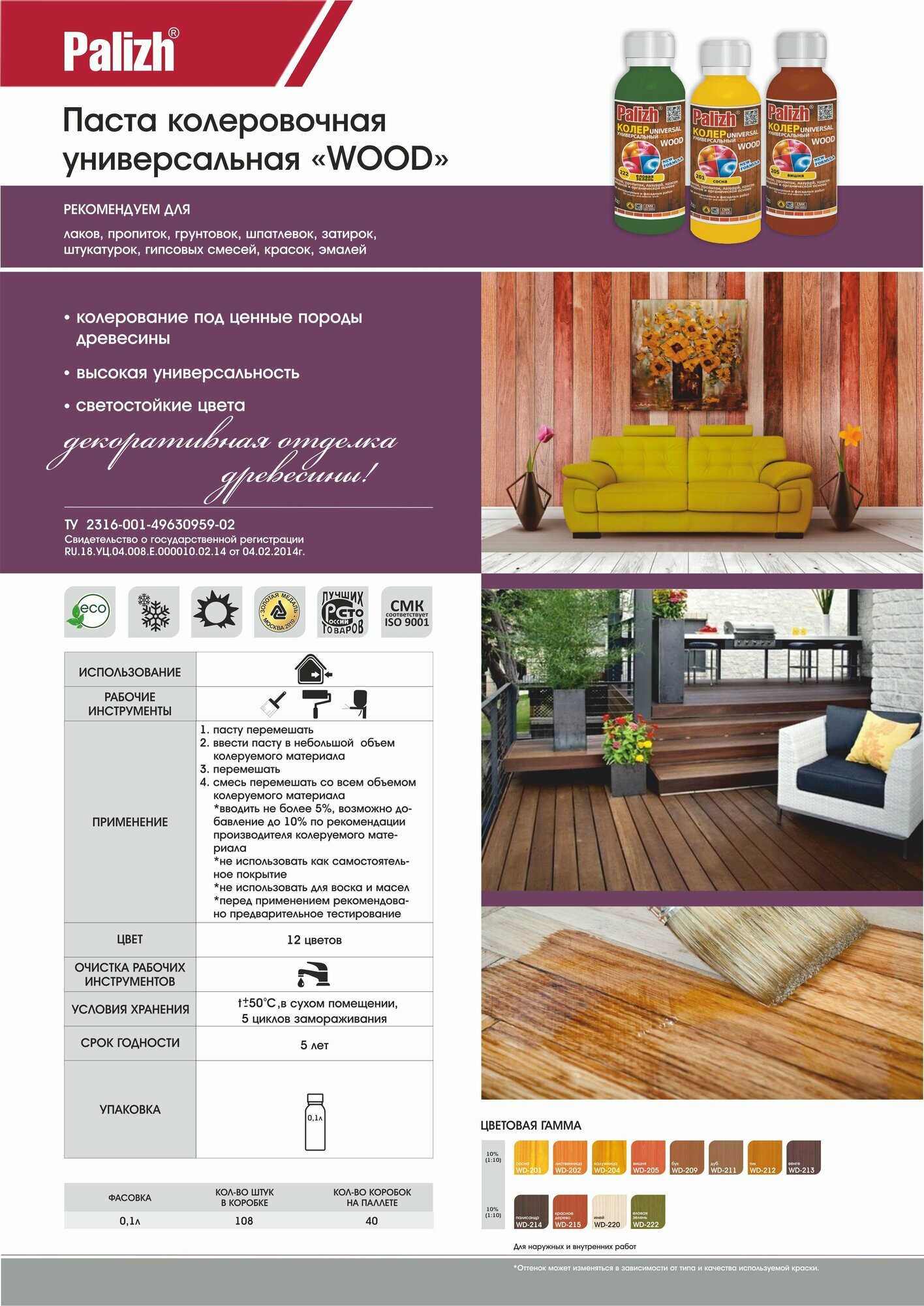 Паста колеровочная универсальная "Palizh WOOD" 0,1л №214 палисандр