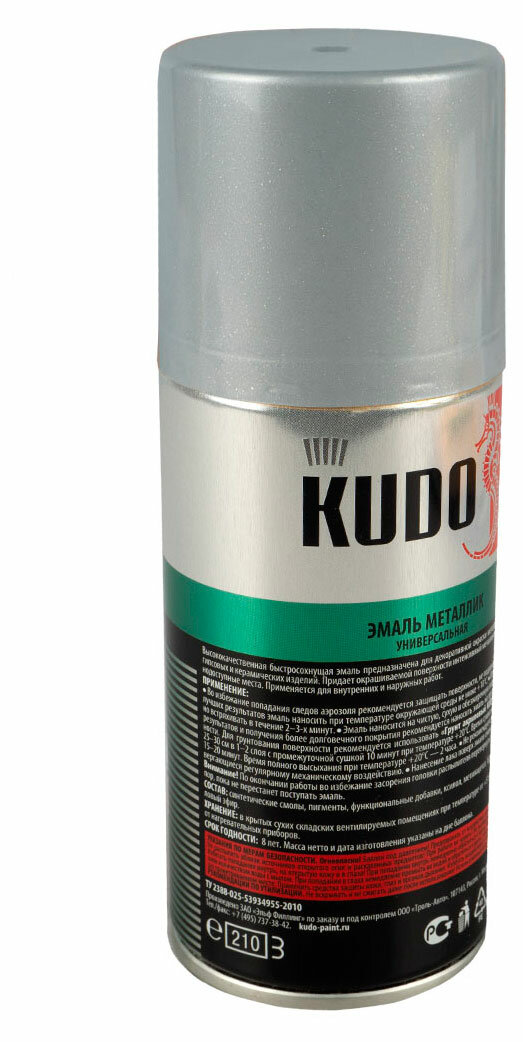 Кудо KU-1027.1 эмаль аэрозольная хром (0,21л) / KUDO KU-1027.1 эмаль металлик аэрозольная алкидная хром (0,21л)