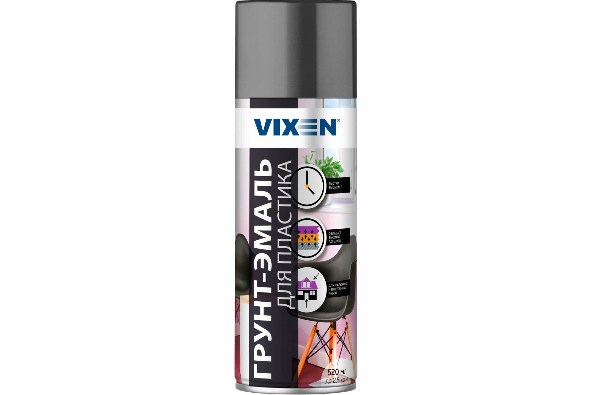 VIXEN VX50101 Грунтэмаль для пластика, графит матовый (RAL 7024), аэрозоль 520 мл VIXEN VX50101