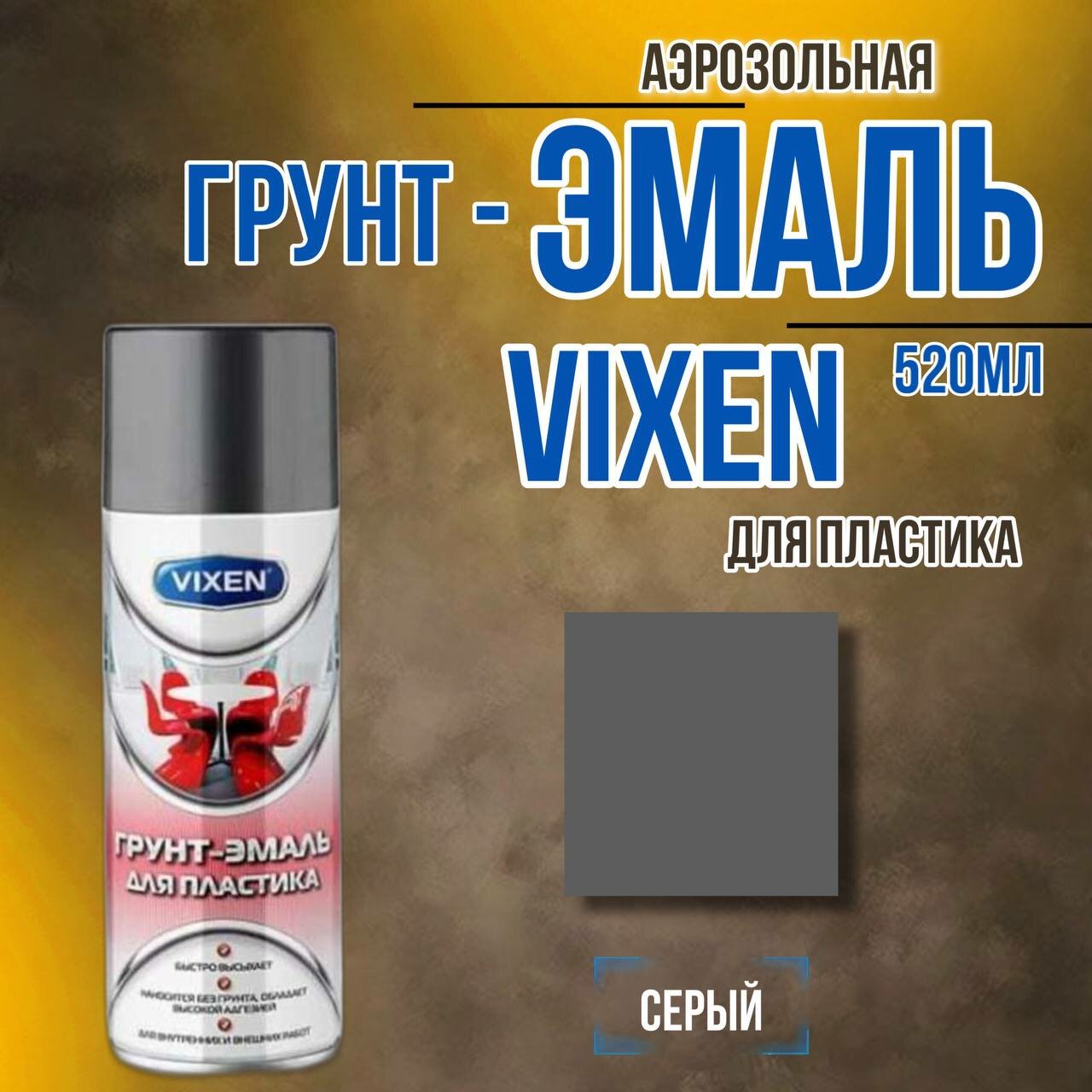 Грунт-эмаль для пластика, серый матовый, аэрозоль VX-50102 520мл, VX50102 VIXEN VX-50102