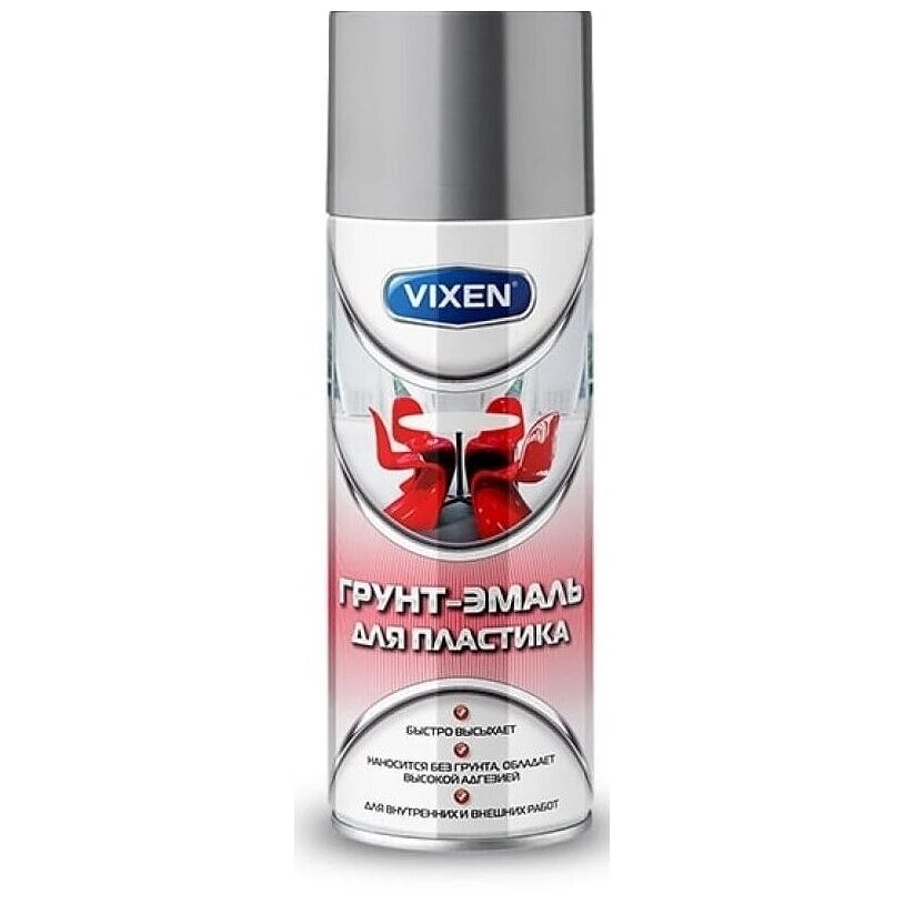 Грунт-эмаль для пластика, серый матовый, аэрозоль VX-50102 520мл, VX50102 VIXEN VX-50102