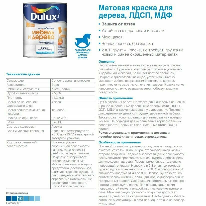 Dulux | Дюлакс Легко обновить Мебель и Дерево износостойкая краска на водной основе матовая база BW 2л