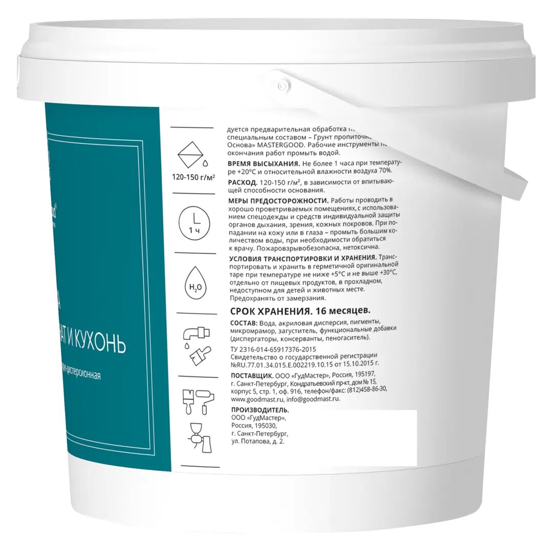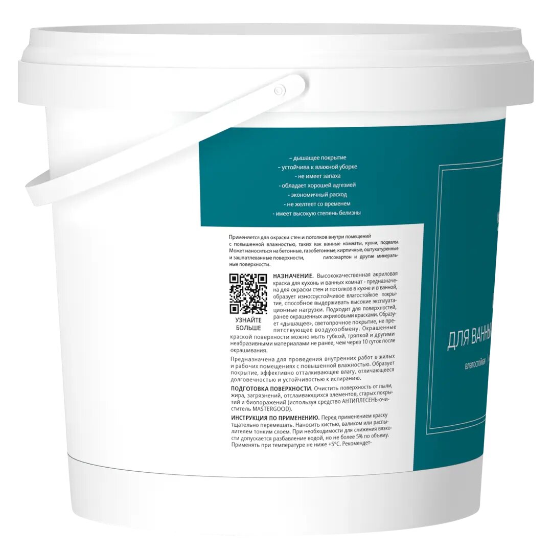 Купить Краска для ванных комнат и кухонь MasterGood (1,5 кг) / Для окраски стен и потолков в кухне и в ванной