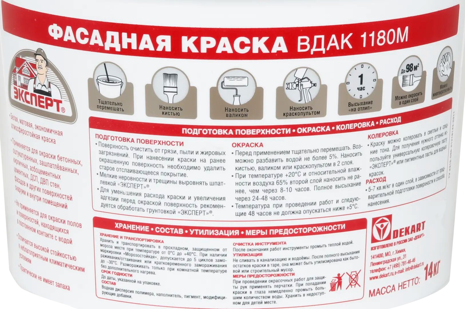 Краска фасадная быстросохнущая эксперт белый 14 кг