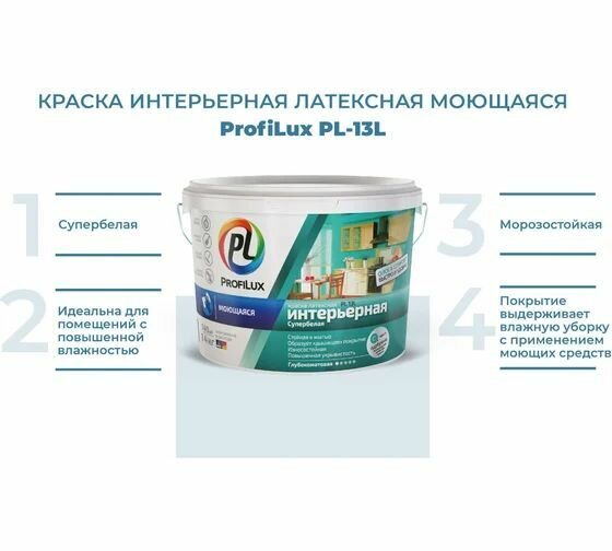 PROFIILUX ВД краска PL- 13L латексная Моющаяся супербелая 1,4кг.