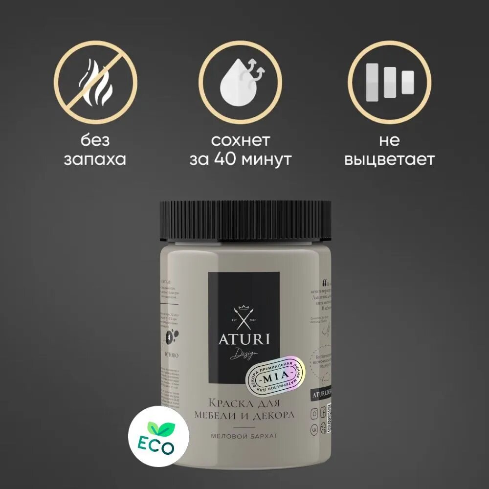 ATURI Design краска для мебели и декора меловой бархат mia нежный пепел T1-00012309