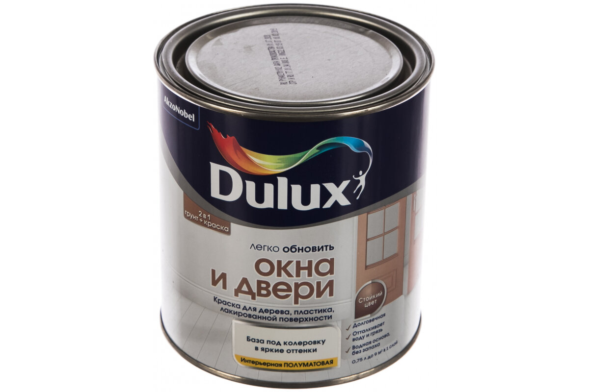 Краска Dulux Окна и двери, водно-дисперсионная, полуматовая база BW 0.75 л.