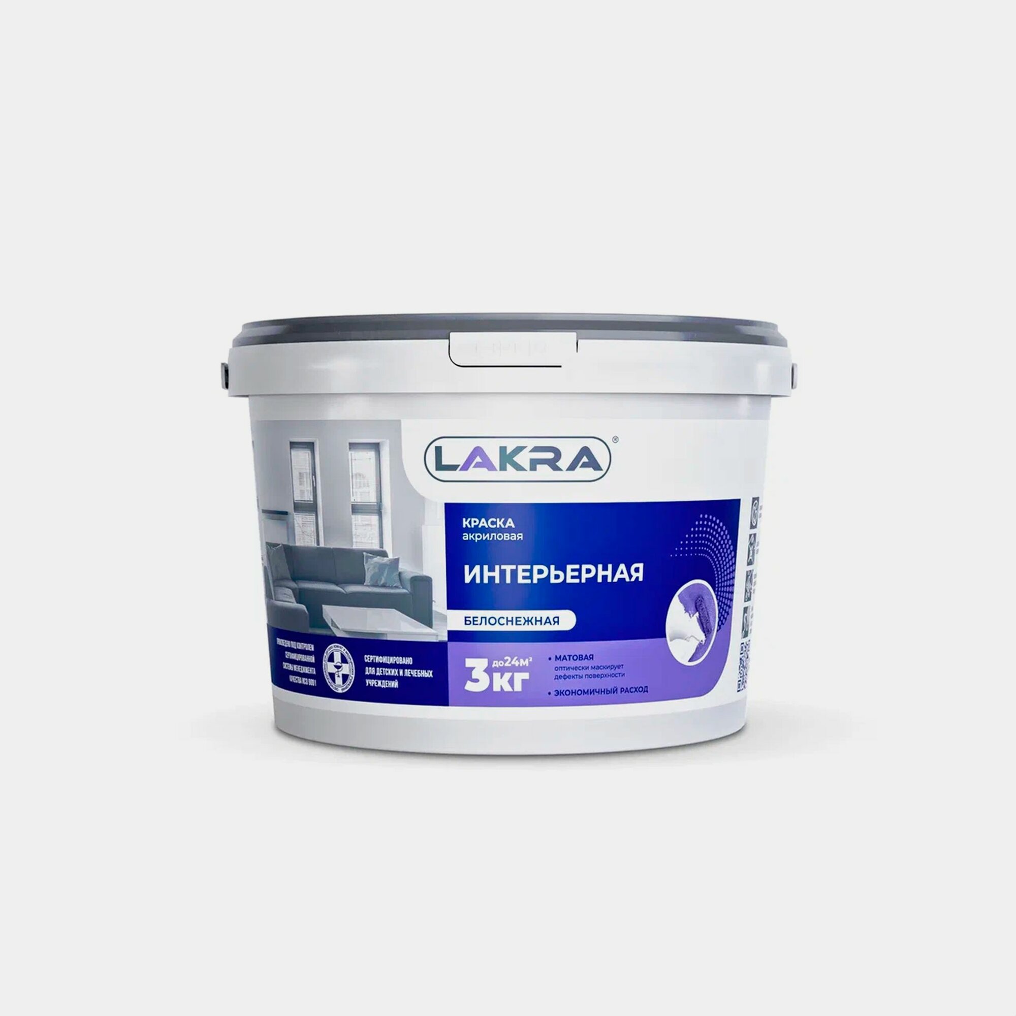 Краска В/д интерьерная белая 3кг (Лакра) ведро акрил. белоснеж. / арт.8306471