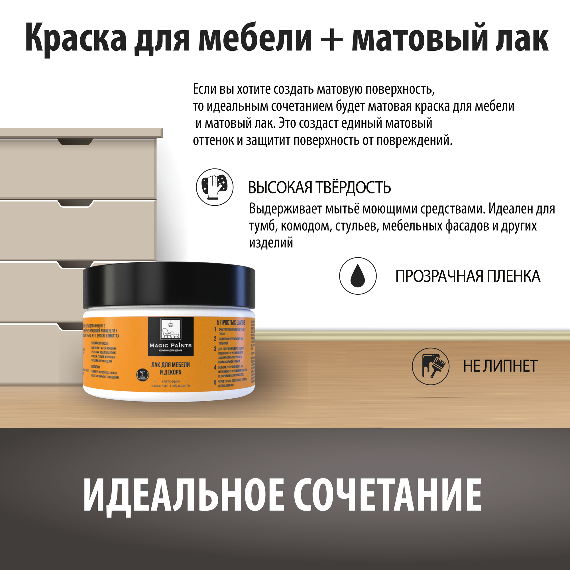 СохранитьМатовая краска для мебели и декора Magic Paints без запаха для стен потолков дерева кухни кухонных фасадов дверей стекла цвет Капучино 0.65 кг интересное: