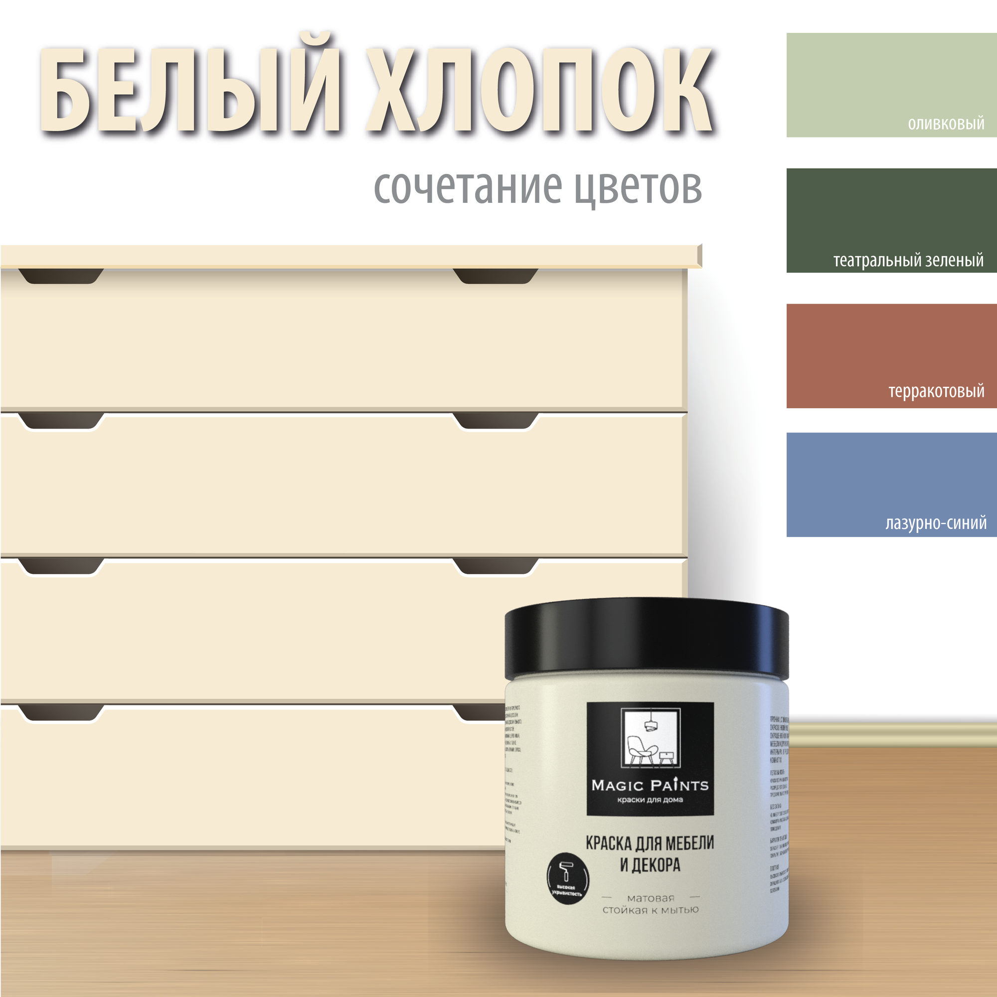 Матовая краска для мебели и декора Magic Paints без запаха для стен потолков дерева кухни кухонных фасадов дверей стекла цвет Белый хлопок 0.65 кг