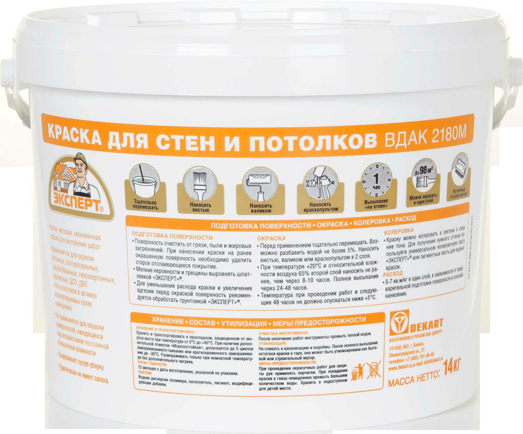Краска акриловая для стен и потолков Эксперт 14 кг белый матовый