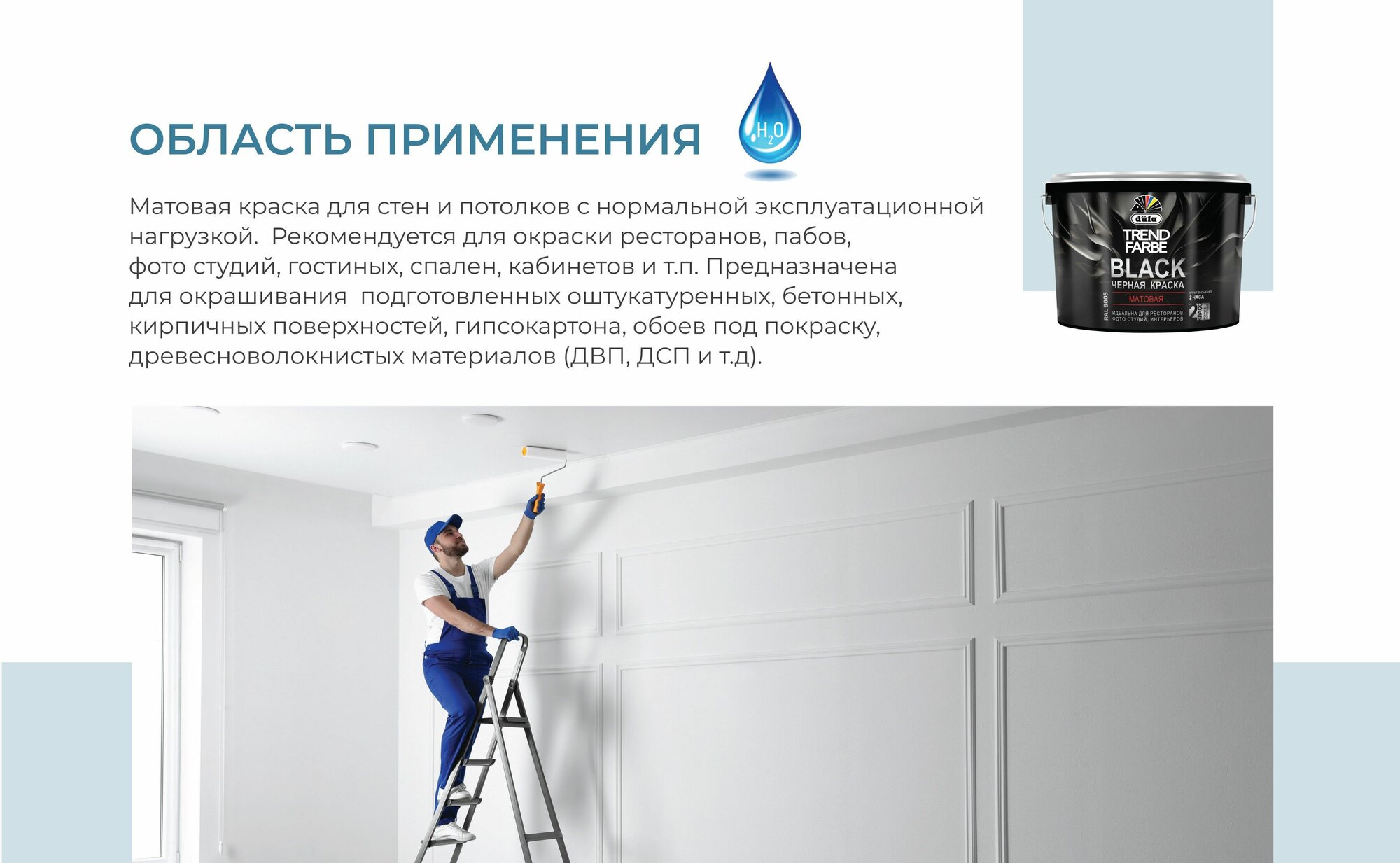 Dufa Trend Farbe Black Краска для стен и потолков водно-дисперсионная (черная, матовая, 2,5 л)