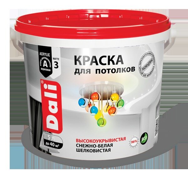 Краска для потолков Dali 9 л супербелый глубокоматовая