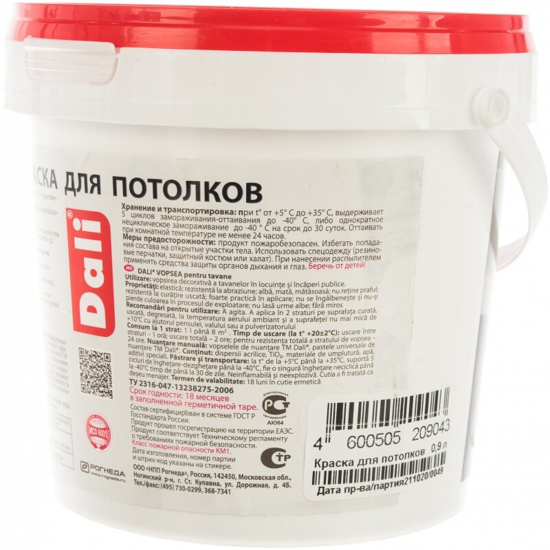 Краска для Потолка Dali 0.9л Акриловая, Белая / Дали.