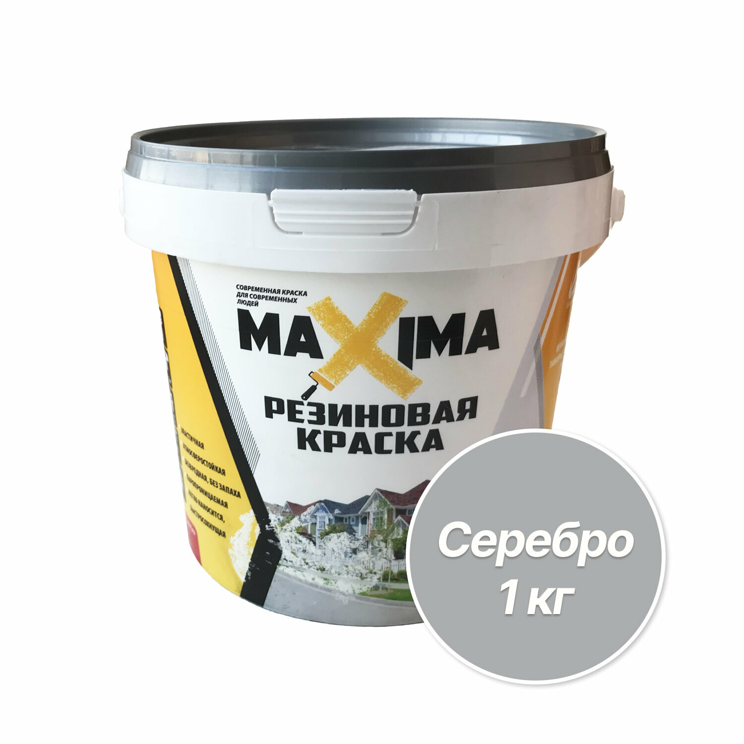 Резиновая Краска Maxima 1 кг №110 - Серебро Универсальная для Внутренних и Наружных Работ / Максима.