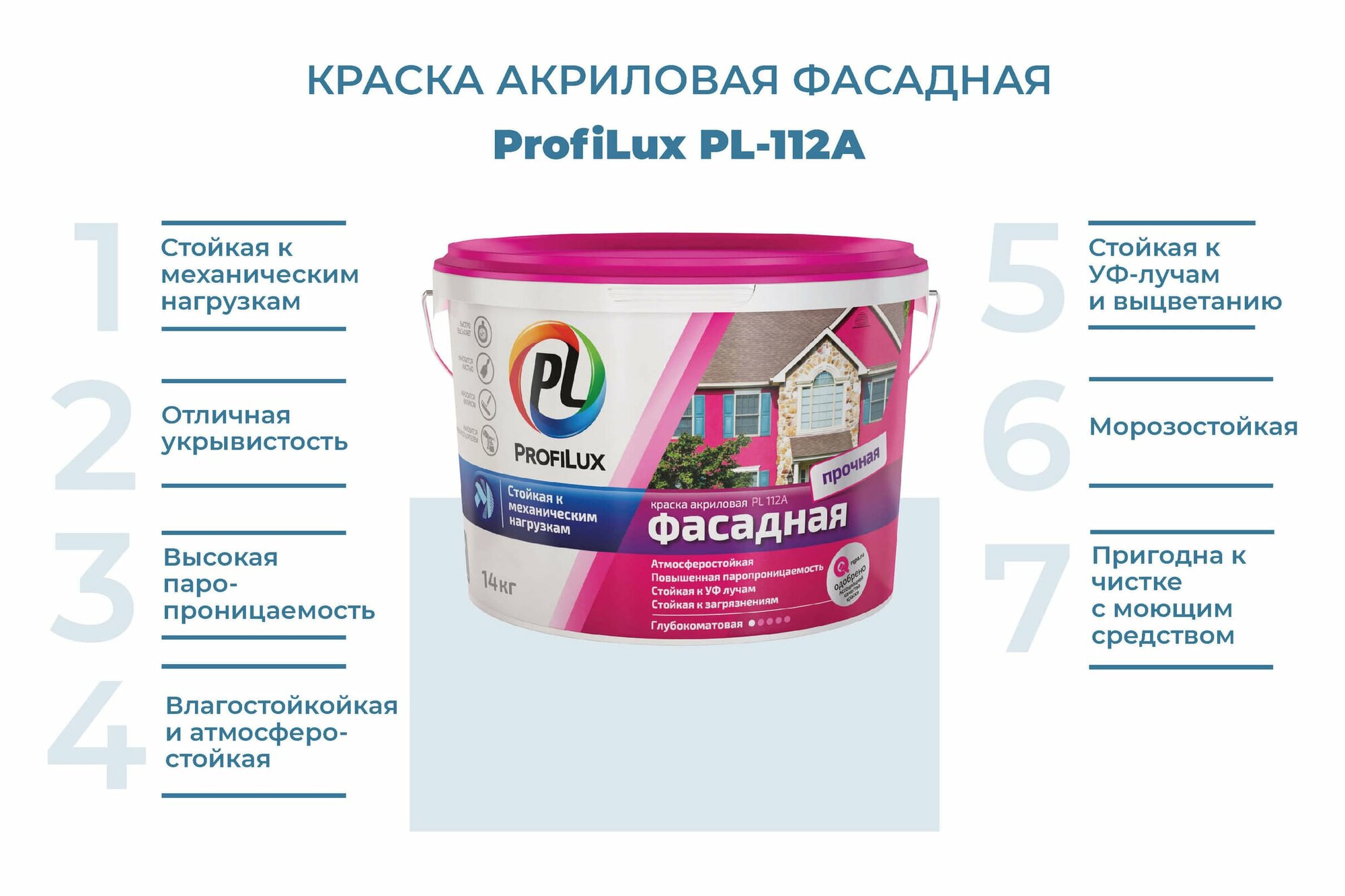 Краска Фасадная ProfiLux PL-112А 14кг Белая, Морозостойкая, Водно-Дисперсионная, Глубокоматовая / Профилюкс 112.