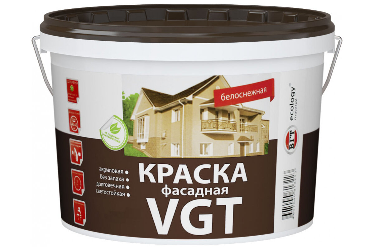 СохранитьКраска фасадная VGT Белоснежная белая, матовая (7кг) интересное: