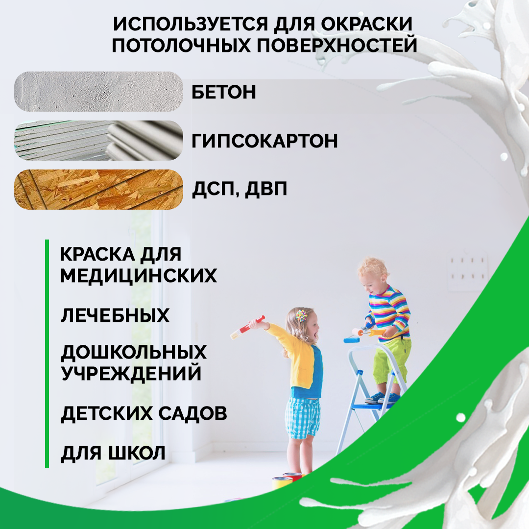 Краска MASTER FARBE супер белая акриловая для потолков в сухих помещениях, Быстросохнущая, Водоэмульсионная, Полуматовое, 3 кг, белый